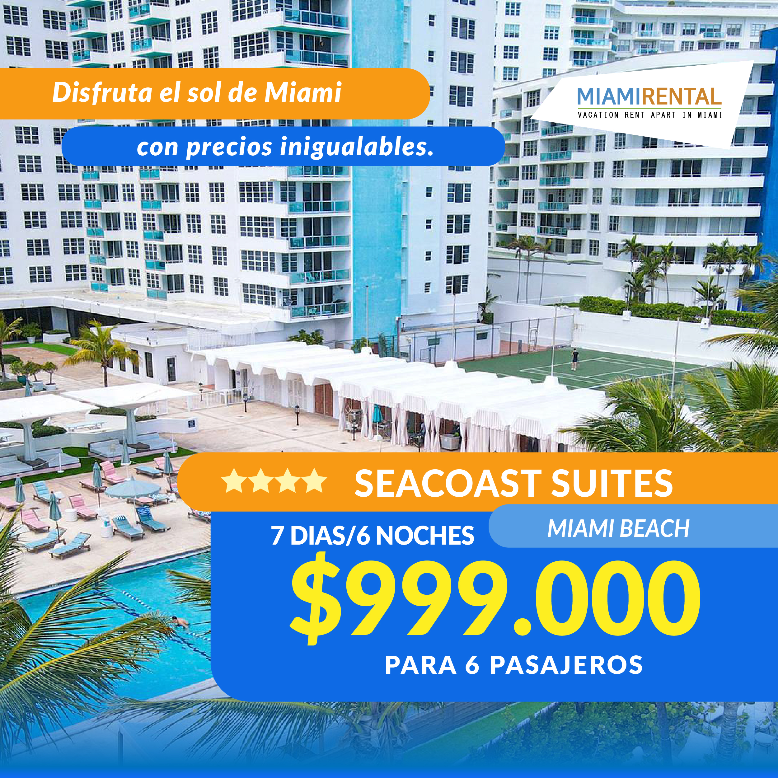 ¡Es hora de planear tus vacaciones! En Miami Rental, disfruta de hasta 30% de descuento en nuestros departamentos vacacionales de lujo, completamente equipados y ubicados en las mejores zonas de Miami y Orlando.